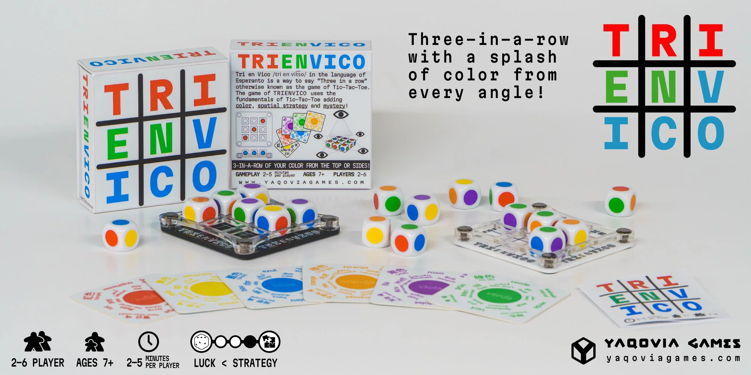 TRI EN VICO Tri en vico in the language of Esperanto is a way to say “Three-in-a-row” otherwise known as the game Tic-Tac-Toe. The game of TRIENVICO uses the fundamentals of Tic-Tac-Toe adding color, spatial strategy and mystery. BUY & PLAY SQWAR™ The battle for each square! A two player battle game of wit strategy. Learn more
